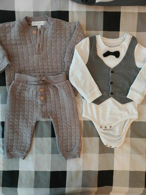 Ubranko w stanie idealnym. W skład wchodzą body na długi rękaw, kaszkiet, muszka zawiązywana na tasiemkę, spodnie, ...