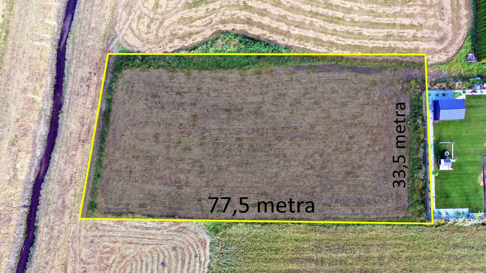 Wymiary działki:Regularny kształt zbliżony do prostokąta: 33,5 m x 77,5 m idealny pod budowę reprezentacyjnego domu jednorodzinnego lub willi z dużym ogrodem, basenem czy strefą rekreacyjną.