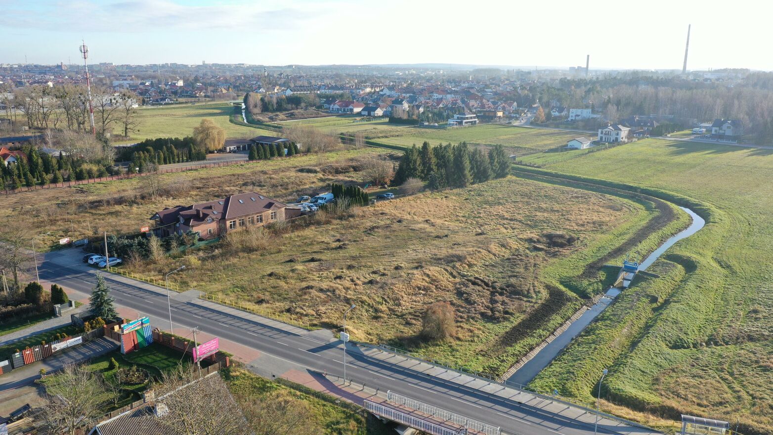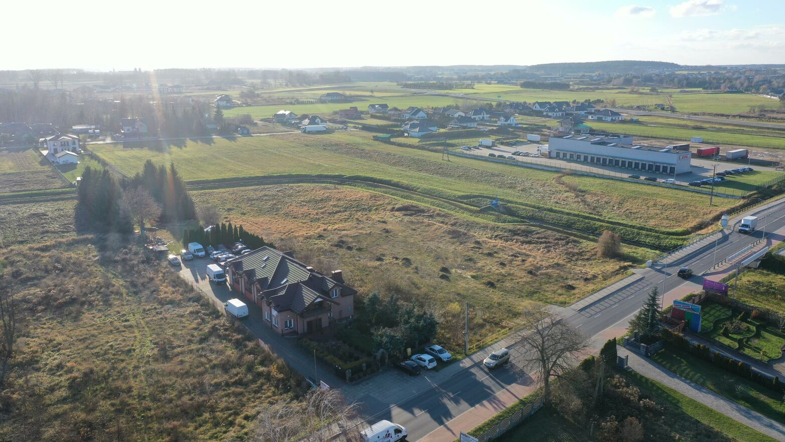 Układ drogowy zapewnia pełną obsługę komunikacyjną działki (prawo- i lewoskręt), co jest kluczowe przy planowaniu obiektu handlowego lub usługowego.