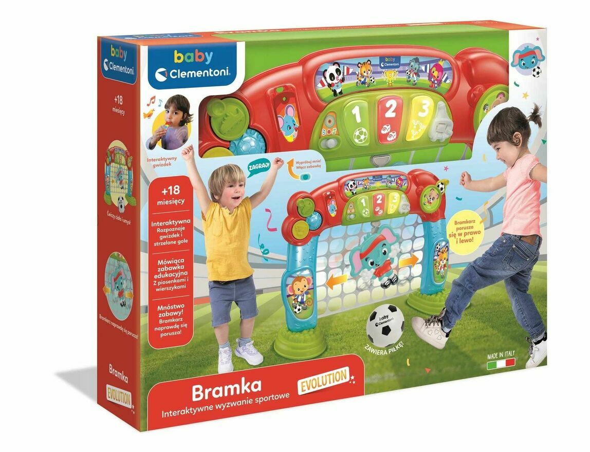 Sprzedam bramkę interaktywną Clementoni. Posiada 3 kolorowe, podświetlane przełączniki, które aktywują rymowanki, aby poprowadzić dziecko przez ciekawe, interaktywne zabawy. Dzięki miękkiej, gumowej piłce, odpowiedniej dla małych piłkarzy, strzelenie gola będzie świetną zabawą! Za każdym razem, gdy piłka dotknie siatki, bramka zliczy gole i będzie świętować głośnymi, radosnymi dźwiękami.Zachęca do nauki liczenia poprzez zabawę.
