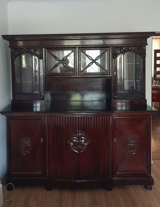 Kredens antyczny do dużego pokoju. Kolor ciemny brąz. Stan bardzo dobry. dębowy. rozmiar 190x195.Sprawdź zainteresowanie tym ogłoszeniem