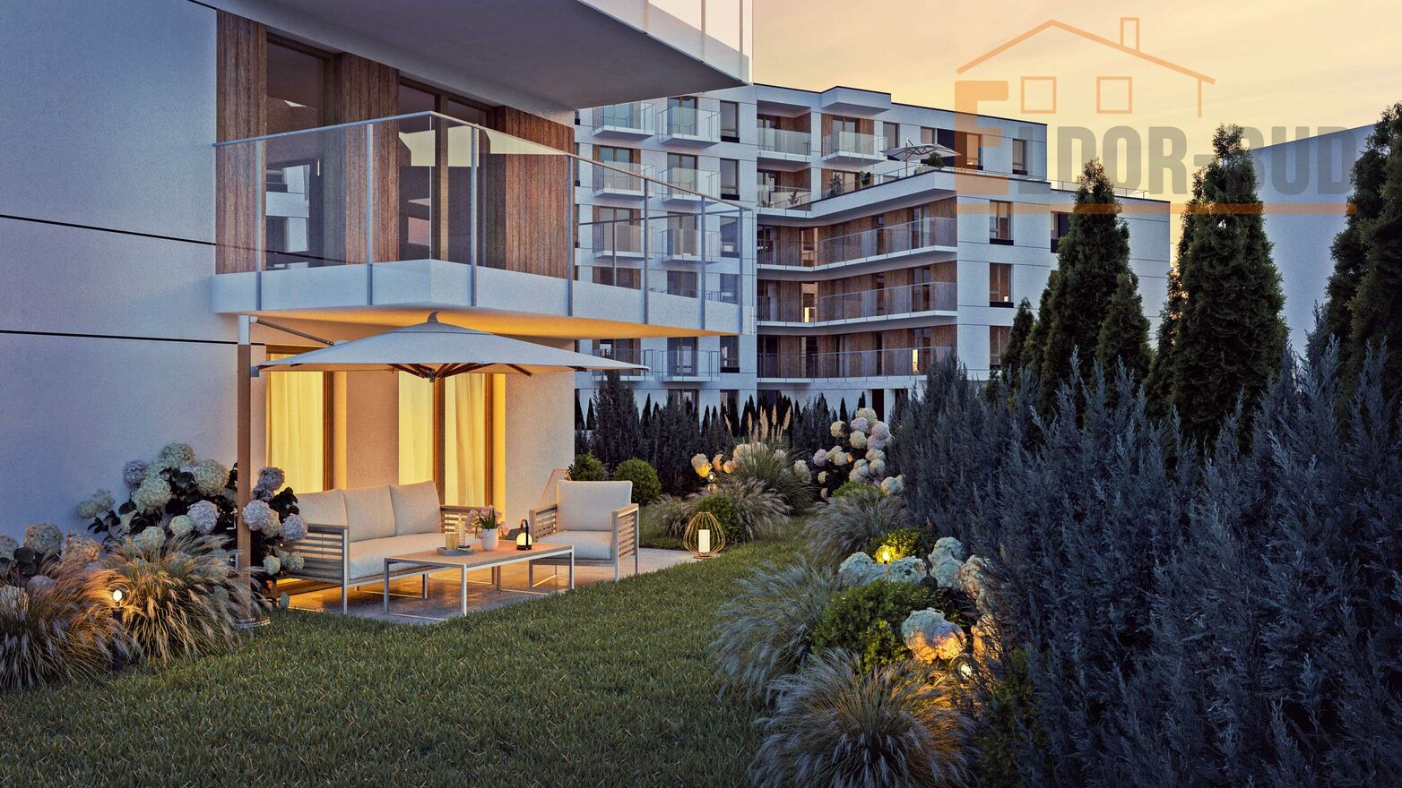 Lokale mieszkalne na parterze będą posiadać zielone ogródki, których metraż wynosi od ok. 20 m do 44 m. Lokale na piętrach posiadają balkony, a niektóre z mieszkań duże i przestronne tarasy.