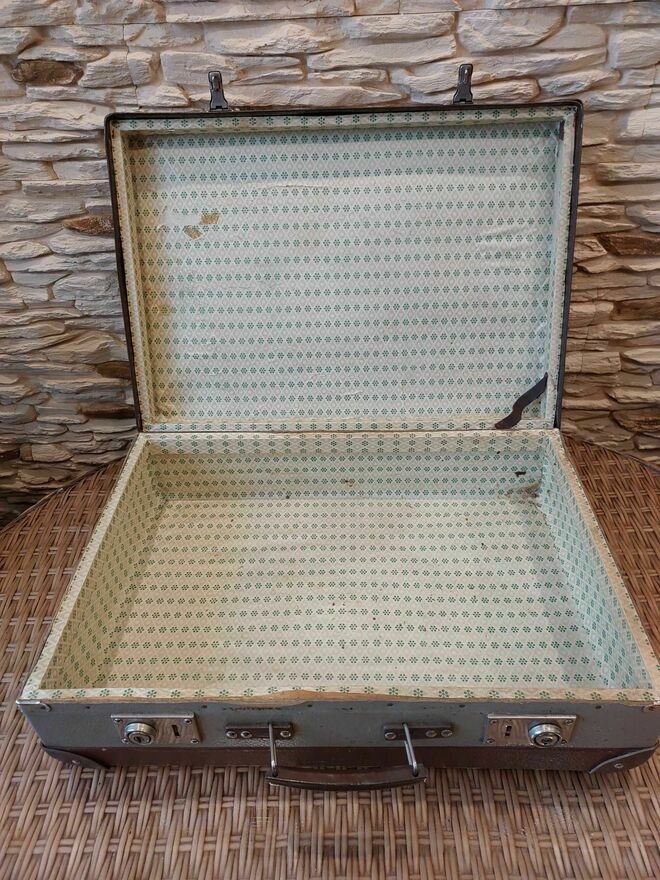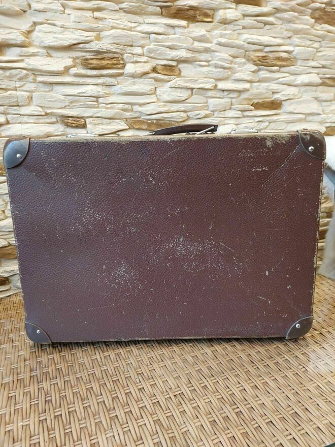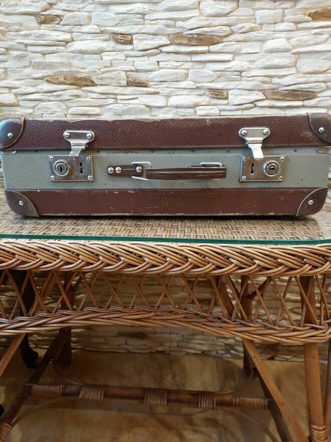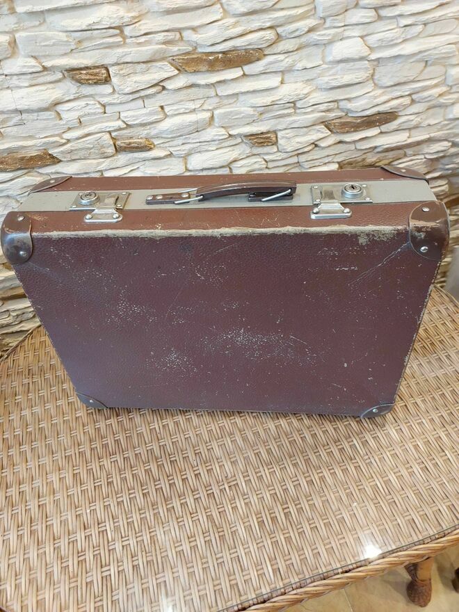 Stara walizka z czasów PRL w kolorze brązowym. Pomieści wiele rzeczy i sprawdzi się doskonale podczas podróży lub jako element dekoracyjny w wystroju wnętrza. Świetna propozycja dla miłośników vintageowych przedmiotów.Walizka z PRL z takimi jechało się na wczasy, kto pamięta ten wie.