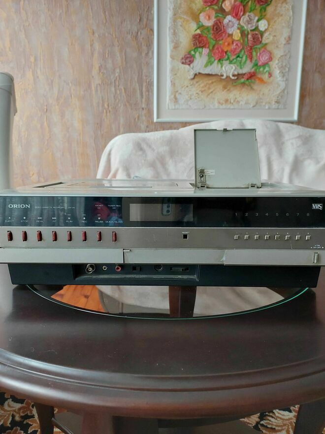 Stary magnetowid VHS marki ORION model VH-303. Używany. Idealny do odtwarzania starych kaset wideo w formacie VHS. Solidna konstrukcja i niezawodne działanie.hanna6119