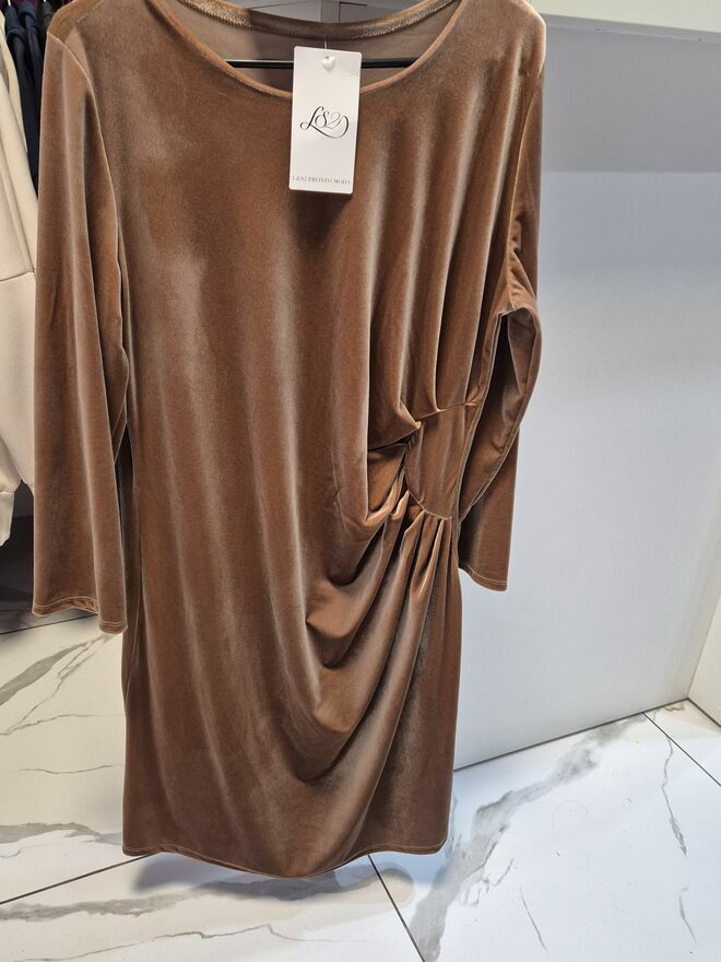 Beżowa sukienka welurowa rozmiar uniwersalny wymiary podane na foto. Wysyłka inpost. Można kupić na vinted. Proszę pisaćIrena