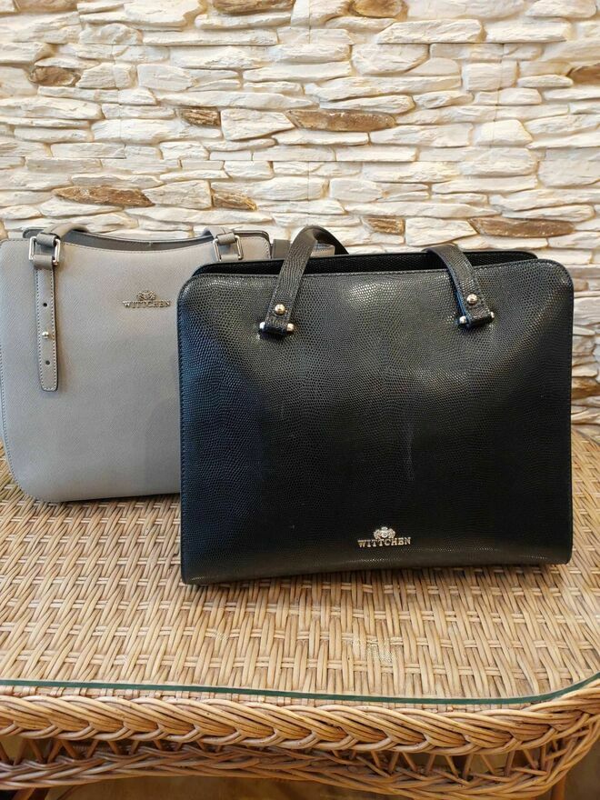 Sprzedam dwie duże używane torebki damskie skórzane marki Wittchen. Czarna i szara kolorystyka, wykonane z naturalnej skóry. Doskonałe na co dzień lub na specjalne okazje.Odbiór osobisty.