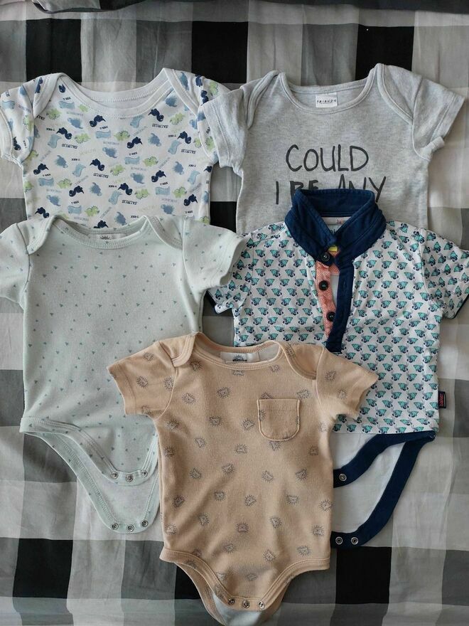 Sprzedam ubranka dla niemowlęcia w przejściowym rozmiarze 62/68cm w stanie dobrym. Są to body, pajacyki, śpioszki, śpiworek, bluzeczki, spodenki ,skarpetki, rajstopy. Wszystkiego około 30 sztuk.Dodatkowo mogę dorzucić jeden z trzech kombinezonów pluszowych widocznych na ostatnim zdjęciu.